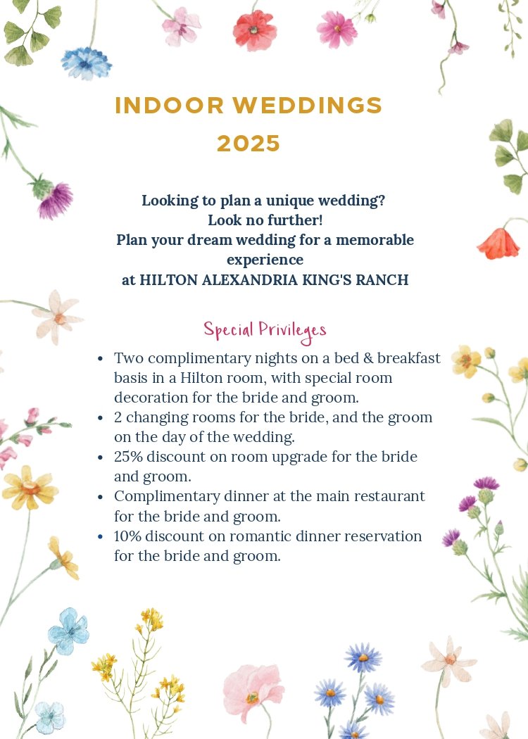 قاعة هيلتون الإسكندرية كينجز رانش هي الوجهة المثلى لإقامة الاجتماعات، المؤتمرات، والاحتفالات المميزة. إذا كنت تبحث عن قاعات اسكندرية المثالية لحفل زفافك، فإن قاعة هيلتون كينجز رانش تقدم لك تجربة لا تُنسى تجعل من ليلتك ذكرى خالدة.