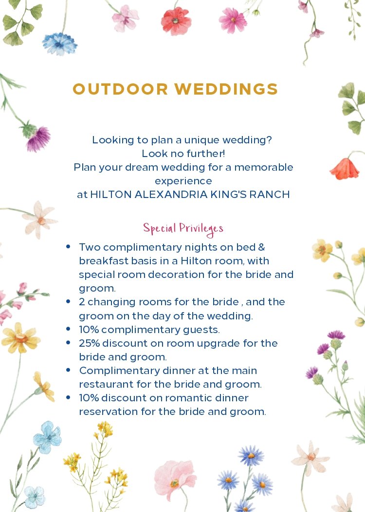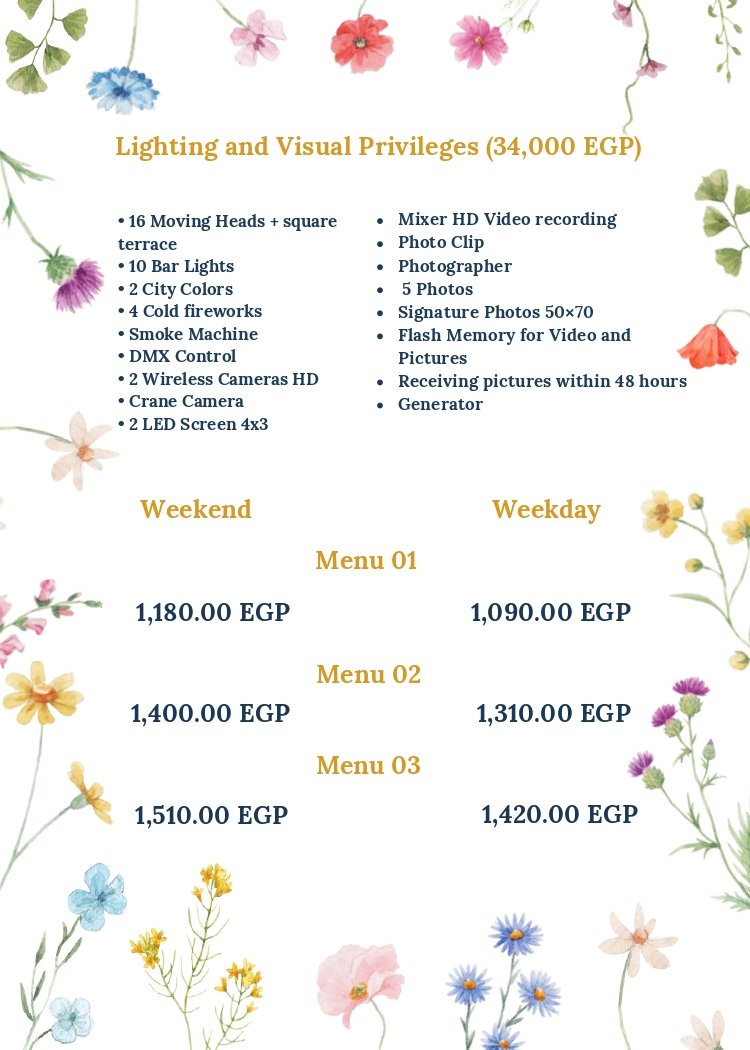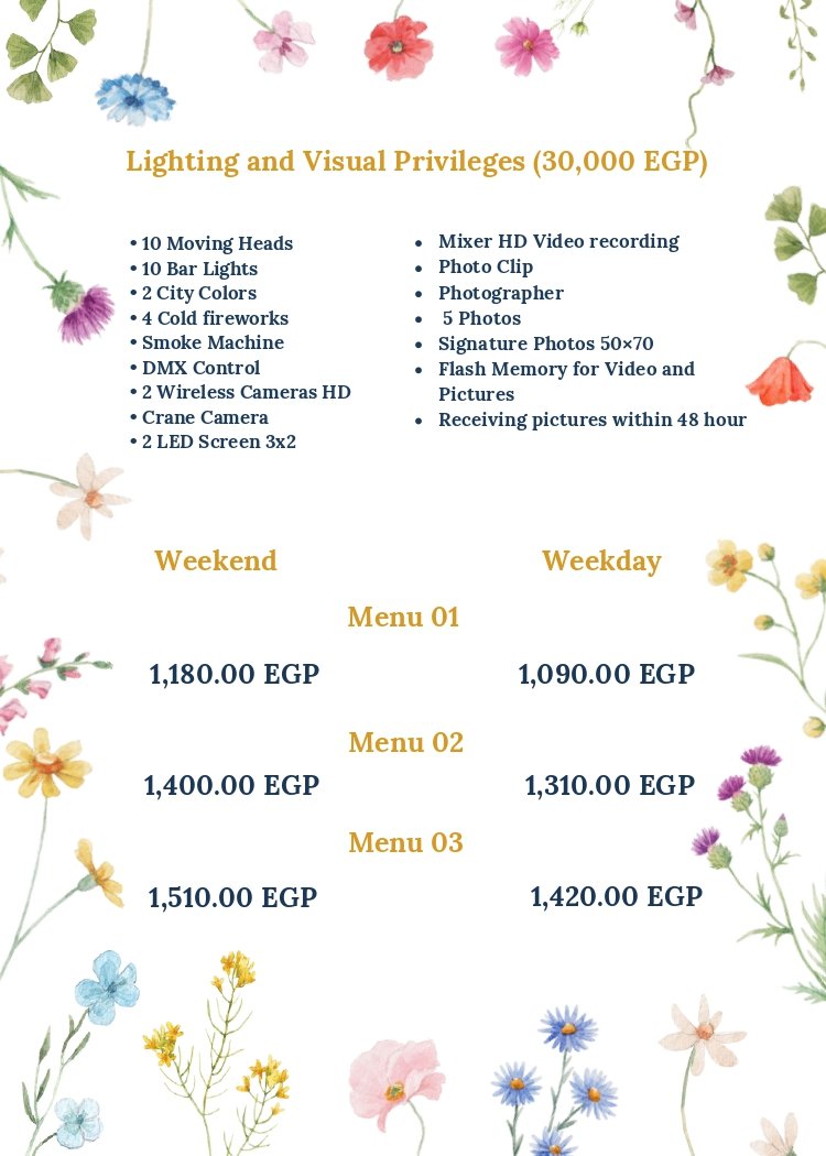 خدمات إضافية: تشمل باقة الزفاف خدمات التصوير الفوتوغرافي والفيديو، وزينة الزهور، وكعكة الزفاف المصممة خصيصاً لكما.
