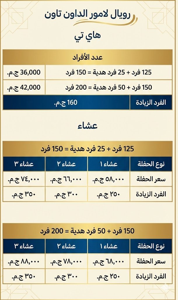 ا. احمد حسين ربنا يبارك لحضرتك يارب كل حاجه كانت جميله وتمام في القاعه والديكور ونضافه المكان عموما