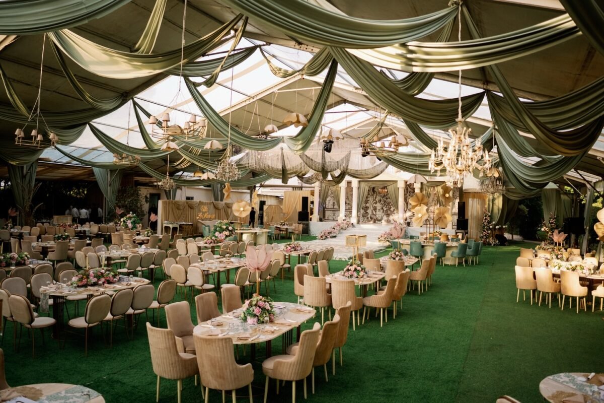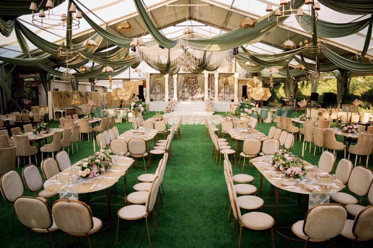 ✅ خدمات متكاملة لحفلات الزفاف: تشمل باقات القاعة تجهيزات البوفيه، الديكورات، الإضاءة والصوت، مع فريق عمل محترف لضمان تجربة لا تُنسى.