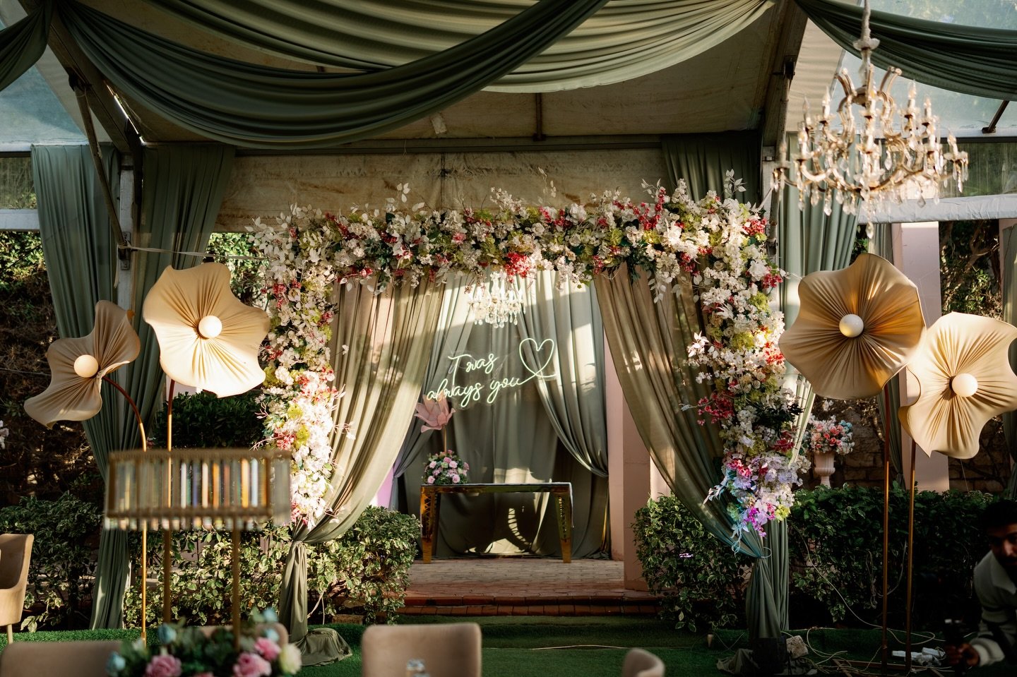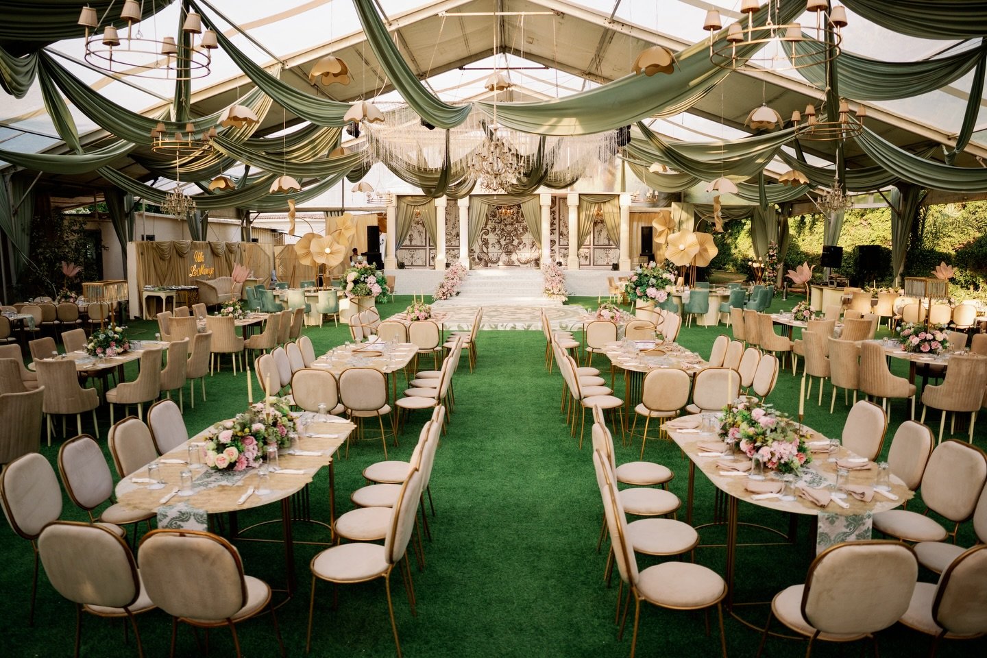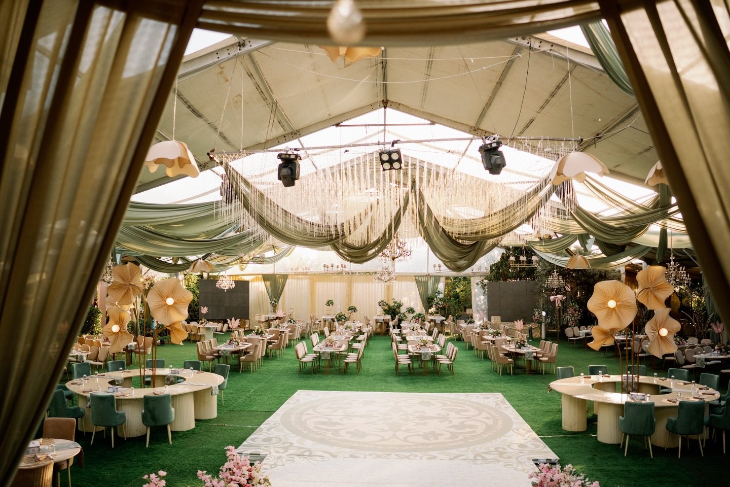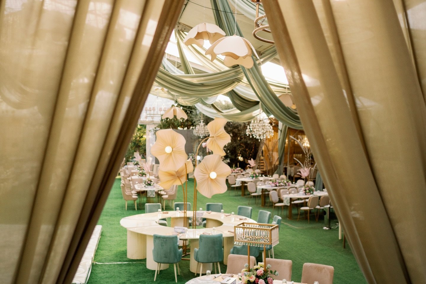 ✅ قاعة أوبن إير بديكورات طبيعية ساحرة: استمتع بجمال الطبيعة والمساحات الخضراء التي تضفي لمسة رومانسية على حفل زفافك.